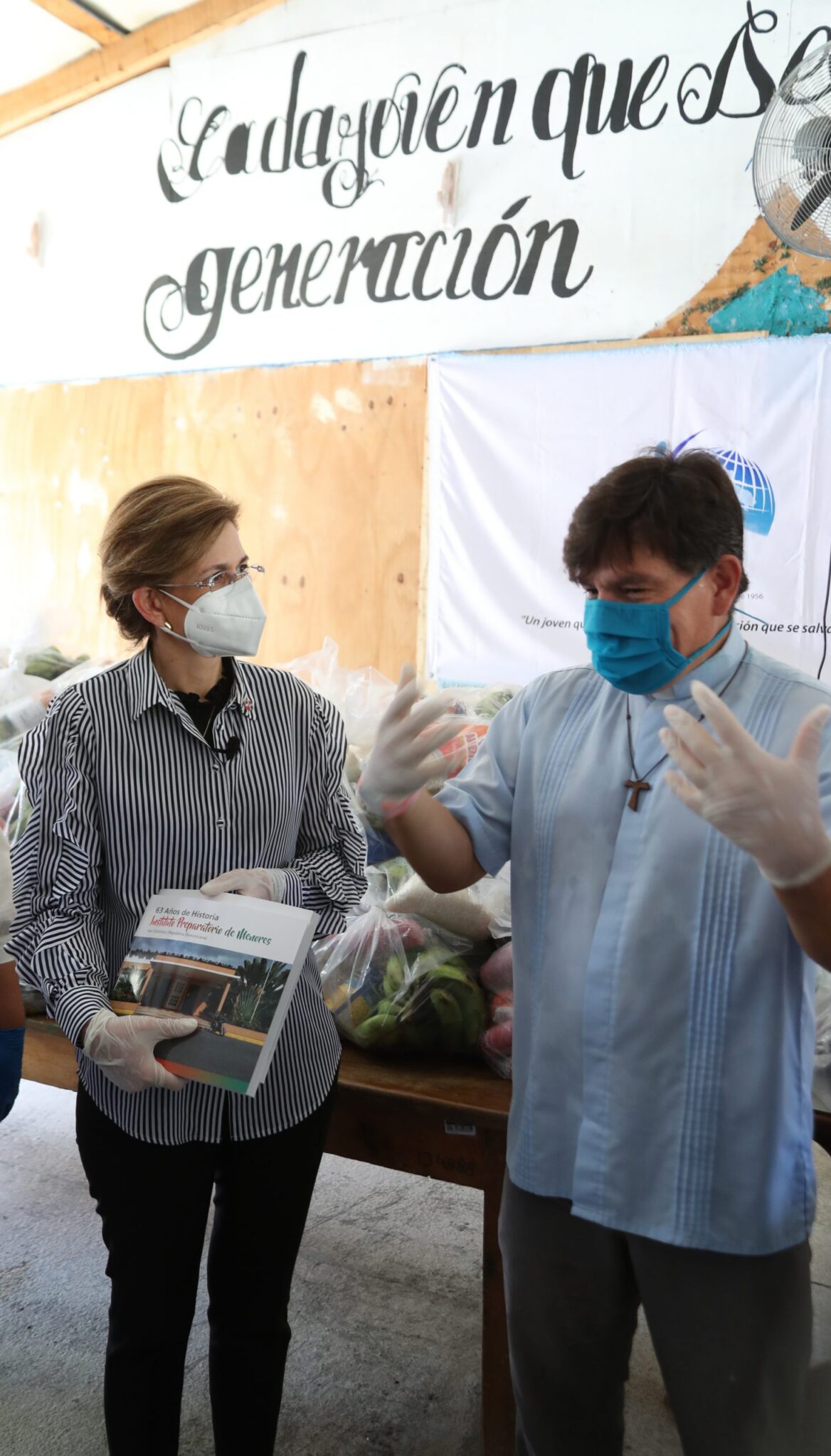 Raquel Peña, visitó las instalaciones el Instituto Polictenico Loyola, Instituto Preparatorio para Menores y la Industria Delicias del Agro, donde recibió el aporte de Juan Reyes Cuevas de 800 raciones alimenticias para ser utilizadas en la Ruta Solidaria.